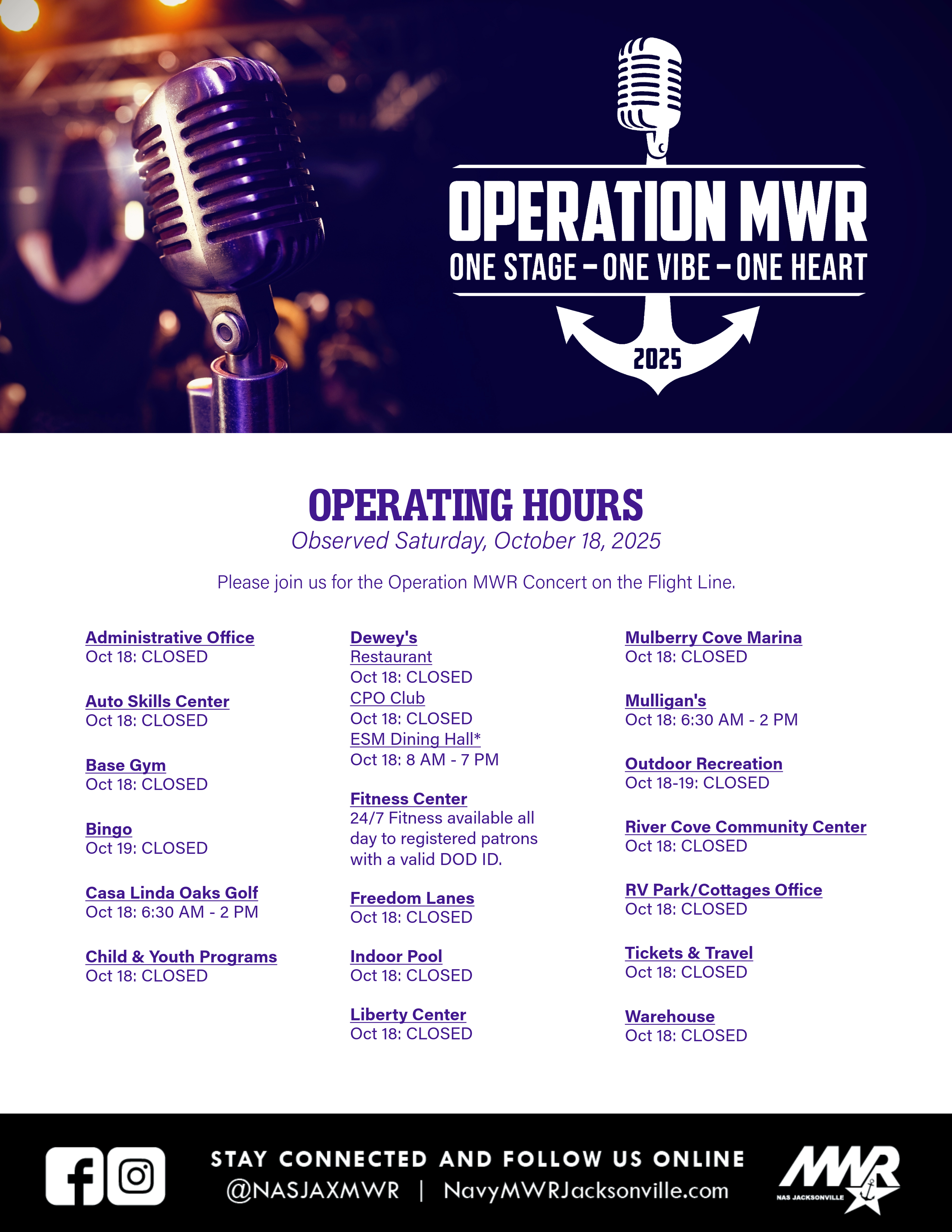 Oct. 18, 2025: Operation MWR Specialty Hours